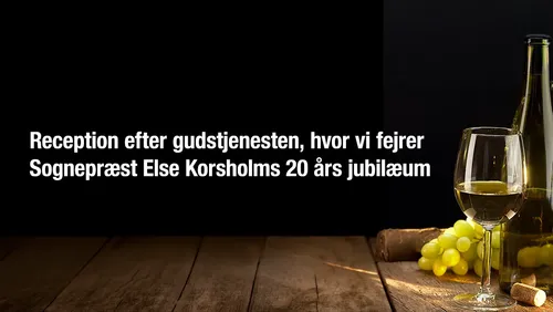 RECEPTION: Mandag d. 4. maj 2026 kl. 20 efter gudstjenesten, hvor der er fejring af sognepræst Else Korsholms 20 års jubilæum.